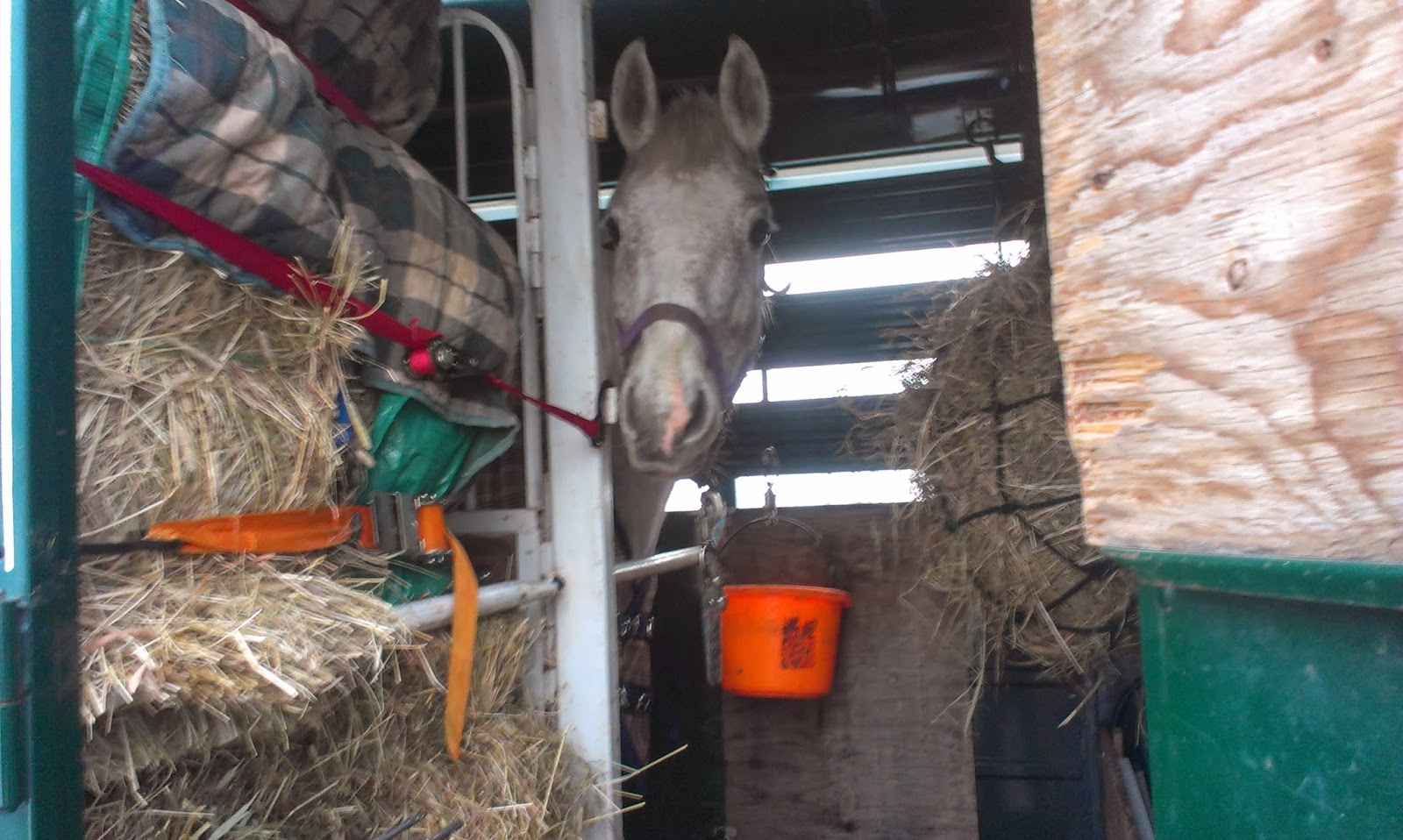 Uwe helped me get the hay tied down and covered. He hooked up the trailer and has it pointing down the driveway. He made a special effort to make sure that Luba could load on the only patch of grass showing beside the lane way.